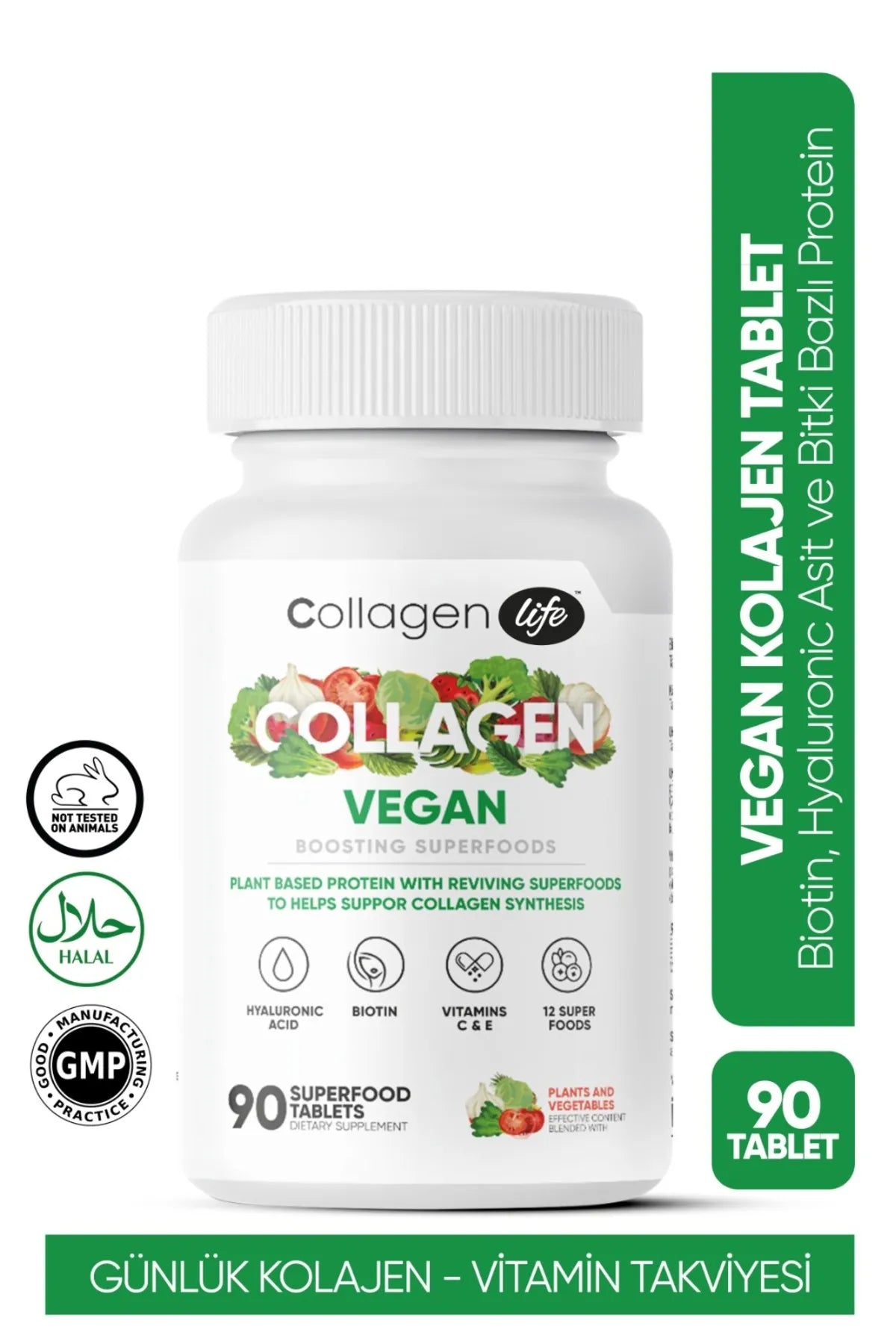Collagen Life Bitki Tozları, Hyarulonıc Acıd, Protein ve Vitamin içeren tablet vücut’da eksilen kolajen üretiminin yerine destekleyici görevi sunar. Kolajen, bitkisel kaynaklardan, genellikle Bitki ve Sebzeler, deniz yosunu, soya, bakla veya diğer bitkisel protein kaynaklarından elde edilen bileşenler içerir.