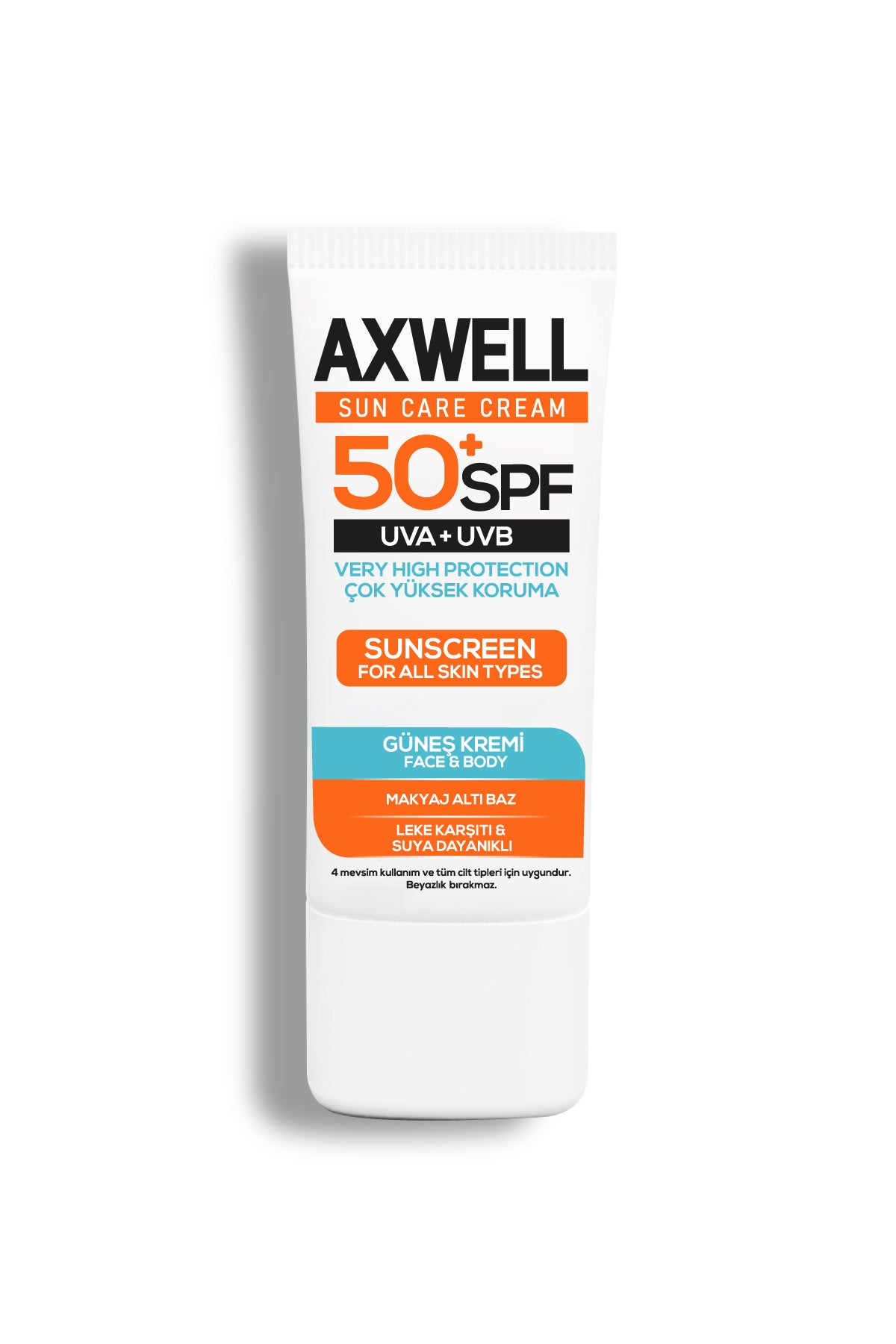 GENEL ÖZELLİKLER: Axwell Güneş Bakım Kremi Güneş Kremi özel formülüyle dağılan UVA ve UVB gibi ışınlardan etkilenmesini engellerken, gün boyu kesintilerin nem kaybının azalmasına yardımcı olur.